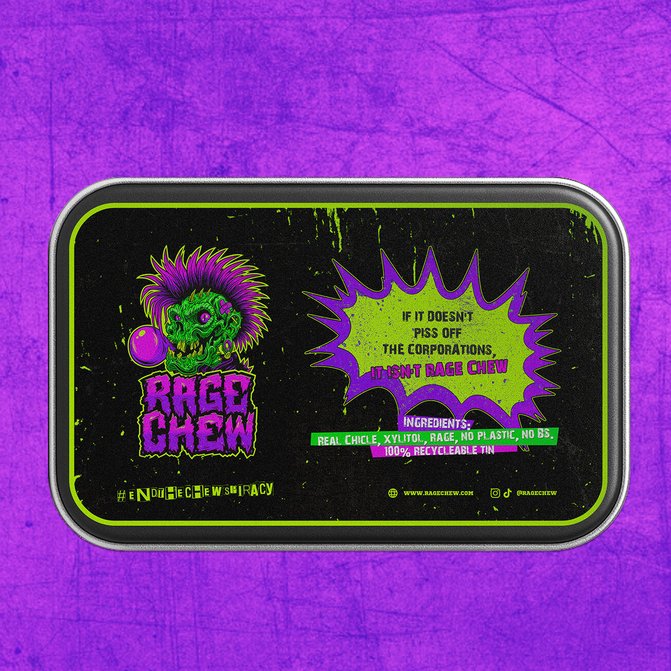 Born out of disgust. Fueled by RAGE. Most gum is plastic- fake "natural" labels slapped on synthetic rubber and petroleum.Rage chew is a middle finger to all that. made with real chicle and real xylitol, our gum is zero plastic, zero lies. just clean natural ingredients that bite back.